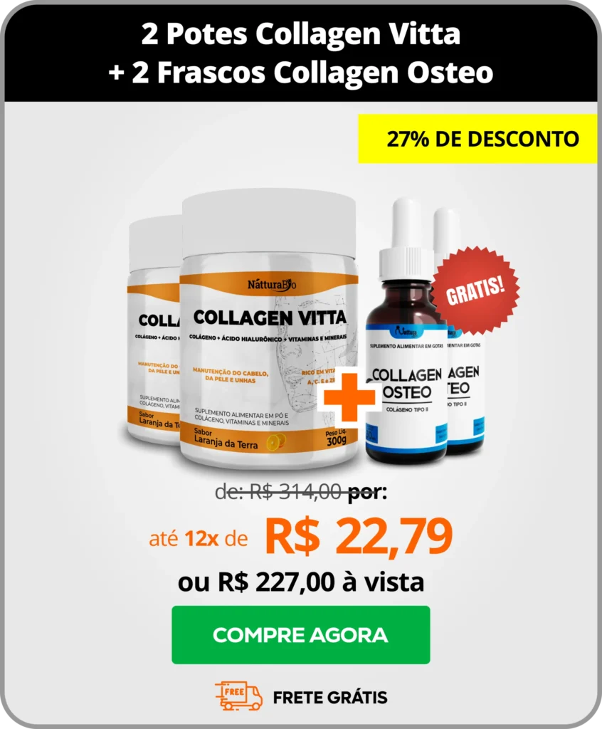 O Collagen Vitta tem como função fortalecer, hidratar e promover elasticidade na pele.