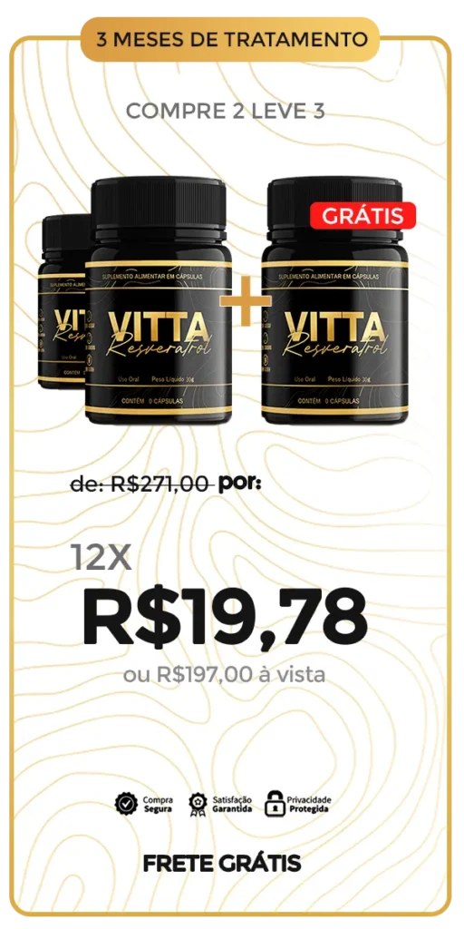 Por se tratar de um Suplemento alimentar, Vitta Resveratrol é um produto dispensado da obrigatoriedade de registro conforme RDC 27/2010 e 240/2018 (ANVISA), porém, devidamente autorizado para comercialização e sem nenhuma restrição pelo órgão.